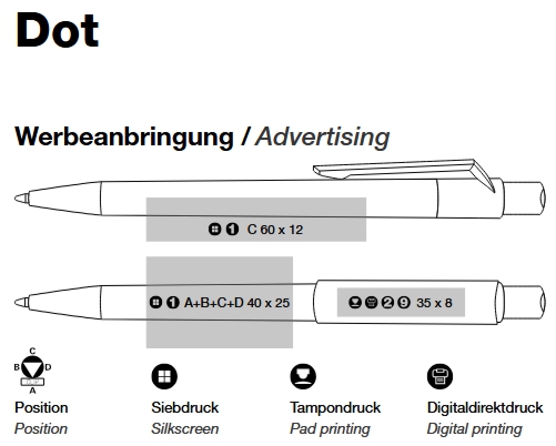 quatron Kugelschreiber Dot color Softtouch 47811 - Der quatron Kugelschreiber Dot color Softtouch ist ein hochwertiger Druckkugelschreiber, made in Europe, mit farbigem Drückerpunkt. Der softgummierte Schaft und der farblich abgestimmte Drückerpunkt in Volltonfarben sorgen für eine angenehme Haptik und moderne Optik. Clip und Drücker in Weiß. Ausgestattet ist der quatron Kugelschreiber Dot color Softtouch mit einer blauschreibenden Jumbo-Mine für ein besonders komfortables und langlebiges Schreibgefühl. Bedrucken Sie Ihren quatron Kugelschreiber Dot color Softtouch auf dem Clip und auf dem Schaft