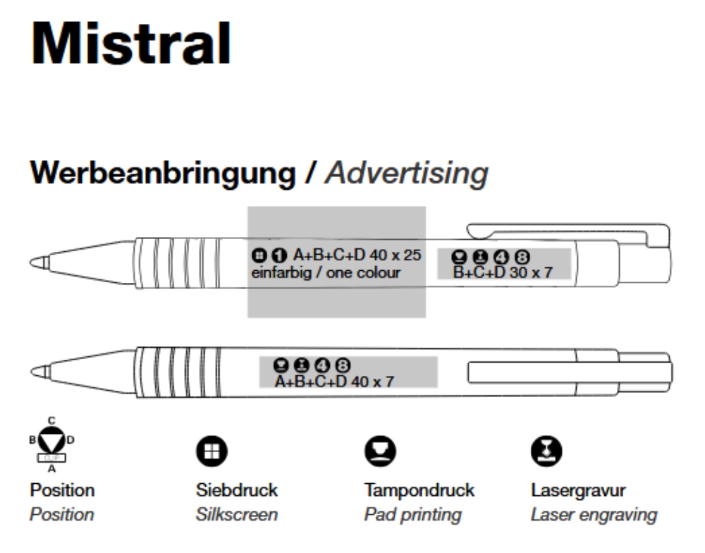 quatron Kugelschreiber Mistral 81690 - Der quatron Kugelschreiber Mistral ist ein hochwertiger Metall-Druckkugelschreiber mit Aluminium-Schaft. Der Schaft des quatron Kugelschreibers Mistral ist aus glänzend lackiertem Aluminium. Erhältlich in den Farben Blau, Schwarz, Metallic-Rot, Metallic-Grün und Metallic-Blau. Spitze, Ringe und Oberteil des quatron Kugelschreibers Mistral sind glänzend silber, Metallclip glänzend verchromt. Ausgestattet mit einer blauschreibenden G2-Global-Metallgroßraummine für ein besonders weiches Schreibgefühl und eine lange Schreibleistung. Bedrucken Sie Ihren quatron Kugelschreiber Mistral auf dem Schaft. Außerdem eignet sich der quatron Kugelschreiber Mistral hervorragend für eine Lasergravur.