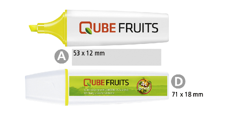 Bedrucken Sie Ihren STABILO BOSS Original Textmarker auf der dafür hervorragend geeigneten Fläche.