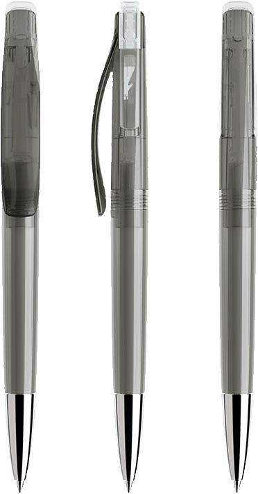 DS2 PTC-T prodir Kugelschreiber - Der DS2 PTC-T prodir Kugelschreiber ist ein in der Schweiz hergestellter, hochwertiger Druckkugelschreiber aus transparentem Kunststoff. Er verfügt über einem schlanken Druckknopf mit langen Seitenflügeln. Ein elegant gebogener Clip prägt das Aussehen dieses Druckkugelschreibers. Die verchromte Metallspitze des prodir Kugelschreibers DS2 PTC-T unterstreicht das edle Design. Recycling ist bei prodir Standard. Alle Gehäuseteile des prodir Kugelschreiber DS2 PTC-T aus ABS werden aus recyceltem und regeneriertem Kunststoff gefertigt. Die Ausführungen in Schwarz oder Weiss zu 100%, und die farbigen Varianten des prodir Kugelschreibers DS2 PTC-T zu 50%Ausgestattet ist der prodir Kugelschreiber DS2 PTC-T mit einer bleifreien Großraum-Kugelschreibermine (1,0 mm). Wolframkarbid-Kugel und Edelstahlspitze sorgen für ein präzises, langlebiges Schreibsystem mit angenehm sanftem Schreibgefühl. Die Mine ist dokumentenecht (ISO 12757-1/2) und erfüllt die REACH-Verordnung ohne SVHC-Stoffe.