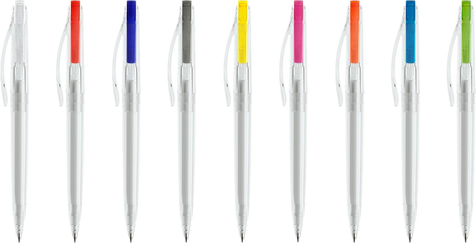 DS2 PTT-T prodir Kugelschreiber - Der DS2 PTT-T prodir Kugelschreiber ist ein in der Schweiz hergestellter, hochwertiger Druckkugelschreiber aus transparentem Kunststoff. Er verfügt über einem schlanken Druckknopf mit langen Seitenflügeln. Ein elegant gebogener Clip prägt das Aussehen dieses Druckkugelschreibers. Recycling ist bei prodir Standard. Alle Gehäuseteile des prodir Kugelschreiber DS2 PTT-T aus ABS werden aus recyceltem und regeneriertem Kunststoff gefertigt. Die Ausführungen in Schwarz oder Weiss zu 100%, und die farbigen Varianten des prodir Kugelschreibers DS2 PTT-T zu 50%. Ausgestattet ist der prodir Kugelschreiber DS2 PTT-T standardmäßig mit einer bleifreien Großraum-Kugelschreibermine aus Kunststoff (1,0 mm). Die hochwertige Wolframkarbid-Kugel in Kombination mit einer Spitze aus nichtrostendem Stahl sorgt für ein präzises und langlebiges Schreibsystem. Die Tintenpaste mittlerer Viskosität ermöglicht ein angenehm sanftes und gleichmäßiges Schreibgefühl. Selbstverständlich entspricht die Mine der ISO-Norm 12757-1/2 und ist dokumentenecht. Zudem erfüllt die schadstoffarme Mine des prodir Kugelschreibers DS2 PTT-T die Anforderungen der REACH-Verordnung (EG) Nr. 1907/2006 und enthält keine Stoffe der SVHC-Liste (Substances of Very High Concern).