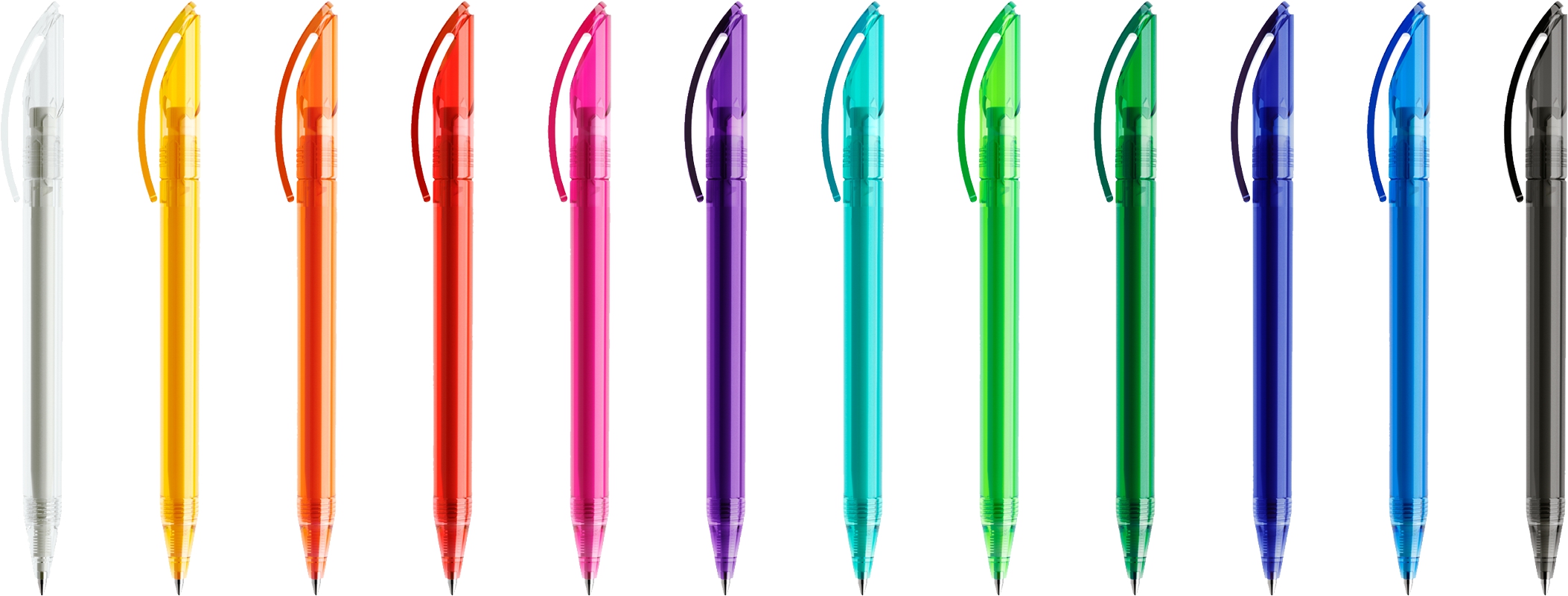 DS3 TTT prodir Kugelschreiber - Der DS3 TTT prodir Kugelschreiber ist ein in der Schweiz hergestellter, hochwertiger Drehkugelschreiber aus transparentem Kunststoff. Der elegant gebogene Clip prägt das Aussehen dieses Drehkugelschreibers. Recycling ist bei prodir Standard. Alle Gehäuseteile des prodir Kugelschreiber DS3 TTT aus ABS werden aus recyceltem und regeneriertem Kunststoff gefertigt. Die Ausführungen in Schwarz oder Weiss zu 100%, und die farbigen Varianten des prodir Kugelschreibers DS3 TTT zu 50%. Ausgestattet ist der prodir Kugelschreiber DS3 TTT standardmäßig mit einer bleifreien Großraummine aus Kunststoff (1,0 mm). Die hochwertige Wolframkarbid-Kugel in Kombination mit einer Spitze aus nichtrostendem Stahl sorgt für ein präzises und langlebiges Schreibsystem. Die Tintenpaste mittlerer Viskosität ermöglicht ein angenehm sanftes und gleichmäßiges Schreibgefühl. Selbstverständlich entspricht die Mine der ISO-Norm 12757-1/2 und ist dokumentenecht. Zudem erfüllt die schadstoffarme Mine des prodir Kugelschreibers DS3 TTT die Anforderungen der REACH-Verordnung (EG) Nr. 1907/2006 und enthält keine Stoffe der SVHC-Liste (Substances of Very High Concern).
