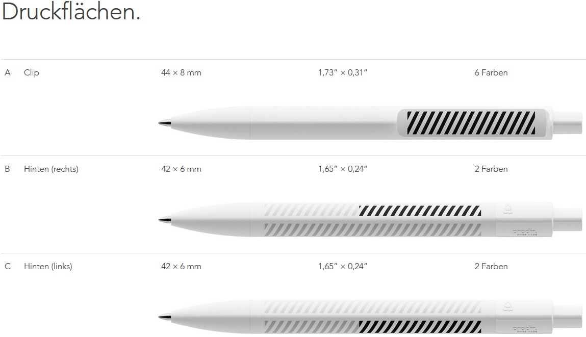Bedrucken Sie Ihren prodir Kugelschreiber DS4 auf bis zu 3 Druckflächen.