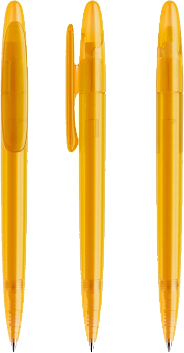 In der Ausführung mit gefrostetem Gehäuse (TFF) ist der prodir Drehkugelschreiber DS5 TFF frosted lieferbar in elf Standardfarben, hergestellt mit einem Rezyklatanteil von 50%, gekennzeichnet mit dem internationalen Recycling-Symbol. Sondergehäusefarben ab 10.000 Stück. Der prodir Drehkugelschreiber DS5 TFF frosted bietet drei Druckflächen für die Werbeanbringungen. Ausgestattet ist der prodir Drehkugelschreiber DS5 TFF frosted mit der umweltfreundlichen auswechselbaren FLOATING BALL® lead free-Großraummine 1.0, Schreiblänge 5.000 m, Schreibfarbe Blau oder Schwarz.