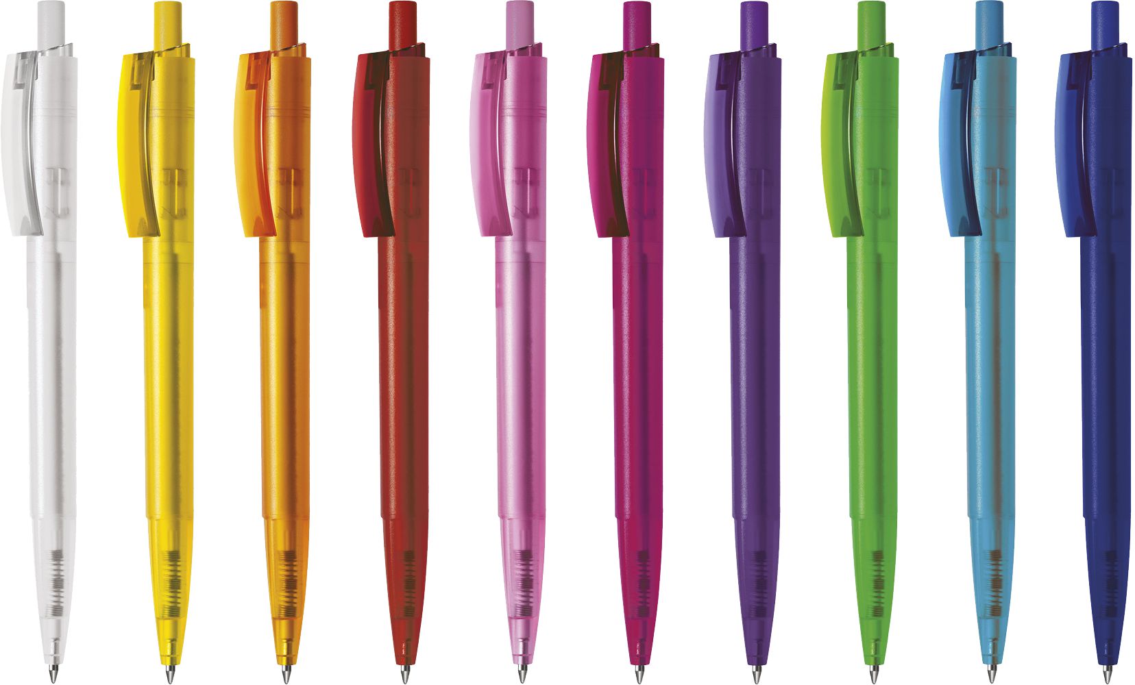 quatron Kugelschreiber Vamos frost 21205 - Der quatron Kugelschreiber Vamos frost ist ein hochwertiger Druckkugelschreiber „Made in Europe“ mit transparent farbig gefrostetem Schaft in vielen attraktiven Farben. Der gebogene, transparent farbige Clip in glänzender Ausführung sorgt für moderne Akzente und eine dynamische Optik. Der Drücker des quatron Kugelschreibers Vamos frost ist in passender Volltonfarbe gehalten und rundet das Design harmonisch ab. Ausgestattet ist der quatron Kugelschreiber Vamos frost mit einer blauschreibenden X20-Mine für ein angenehmes, zuverlässiges Schreibgefühl im täglichen Einsatz. Bedrucken Sie Ihren quatron Kugelschreiber Vamos frost auf dem Clip und auf dem Schaft.
