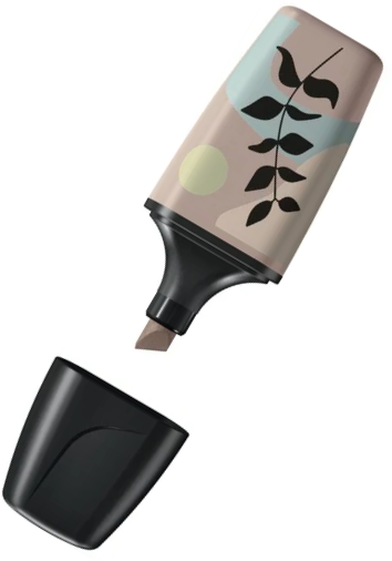 Die markante Form des STABILO BOSS MINI Nature Vibes Textmarkers liegt angenehm in der Hand und verhindert das Wegrollen, sodass Ihre Werbebotschaft stets sichtbar bleibt. Dank der Anti-Dry-Out-Technologie bleibt der STABILO BOSS MINI Nature Vibes Textmarker bis zu vier Stunden offen, ohne auszutrocknen.