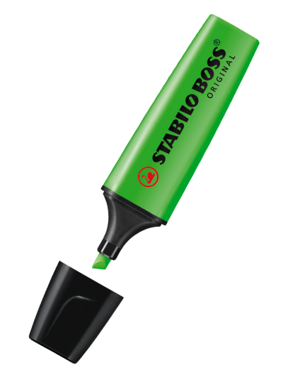 Der Klassiker unter den Textmarkern. Seit 1971 setzt der STABILO BOSS Original Maßstäbe im Büroalltag und ist bis heute der unangefochtene Marktführer unter den Leuchtmarkern.