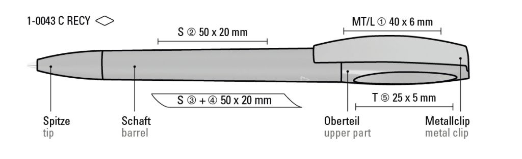 uma Kugelschreiber CHILL C RECY 1-0043 - Der uma Kugelschreiber CHILL C RECY ist ein Drehkugelschreiber mit gedeckt mattem Gehäuse aus 100% recyceltem Post-Consumer-Kunststoff. Metallclip matt verchromt. Der uma Kugelschreiber CHILL C RECY Modell ist mit dem Recyclingzeichen gekennzeichnet. Dank der ClimatePartner-zertifizierten Produktion leistet der uma Kugelschreiber CHILL C RECY einen zusätzlichen nachhaltigen Beitrag zur Schonung der Umwelt. Aufgrund der Besonderheit des Materials (Post-Consumer Recycled Plastic) sind produktionstechnische Farbschwankungen gegeben. Ausgestattet ist der uma Kugelschreiber CHILL C RECY mit einer 8-0855 uma Tech® Refill 1.0 blue Europäische Kunststoff-Großraummine mit weißem oder schwarzem Kunststoffrohr, Neusilberspitze und Wolfram-Karbid-Kugel (1,0 mm). Schreibleistung: ca. 4.500 m. Deutsche Schreibpaste nach ISO-Norm. Die uma Tech Refill 1.0 vermittelt ein angenehmes und weiches Schreibgefühl. Bedrucken Sie Ihren uma Kugelschreiber CHILL C RECY auf dem Schaft und auf dem Clip. Der uma Kugelschreiber CHILL C RECY eignet sich auch hervorragend für eine Lasergravur auf dem Clip.